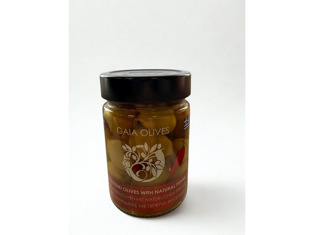 Složení: zelené olivy Chalkidiki, paprika, voda, sůl, kyselina