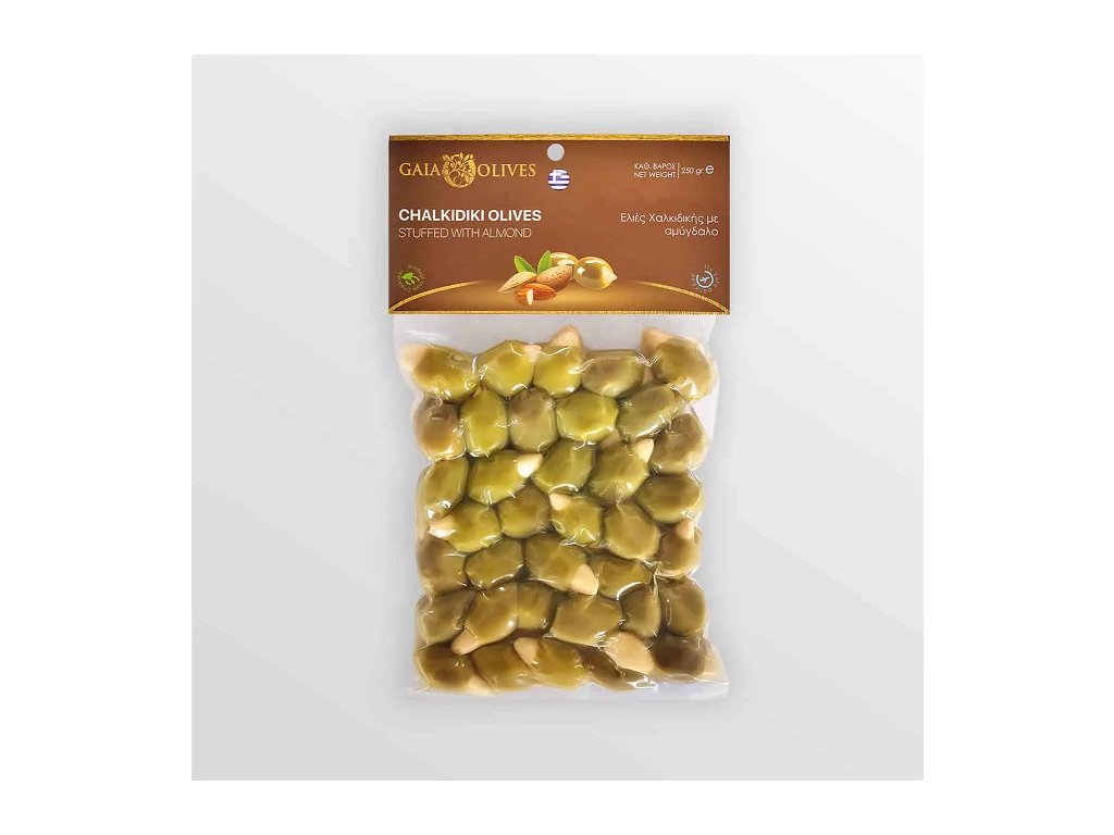 Složení: zelené olivy Chalkidiki, mandle,voda, moř ská sůl, kyselina