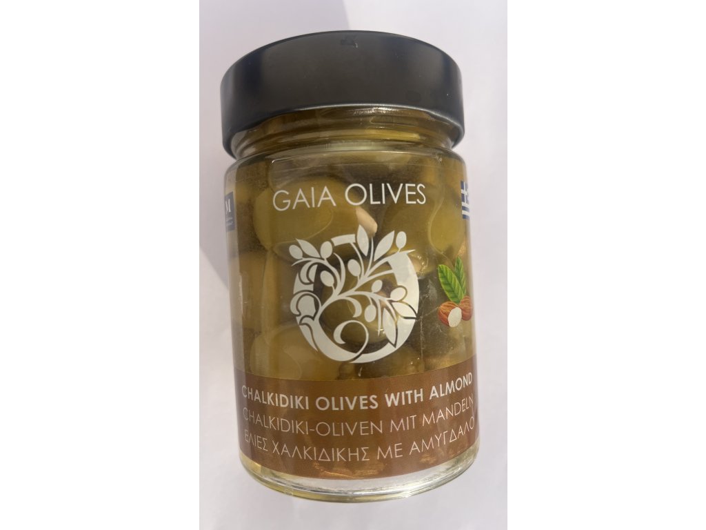 Složení: zelené olivy Chalkidiki, mandle, voda, sůl, kyselina mléčná,
